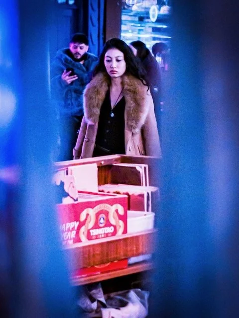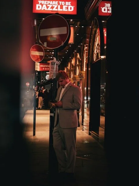 We started at Tottenham Court Road. An area I’d not considered before. Always nice to seek new locations. Bal pointed out reflections in windows and the glass architecture around the area. Looking for suitable light sources—like LED screens and advertising boards—and creating silhouettes as people walked by. Bal also taught me to look for detail within the scene, interrogate the scene - as he says, and look for images that could create a sense of mystery or a story.